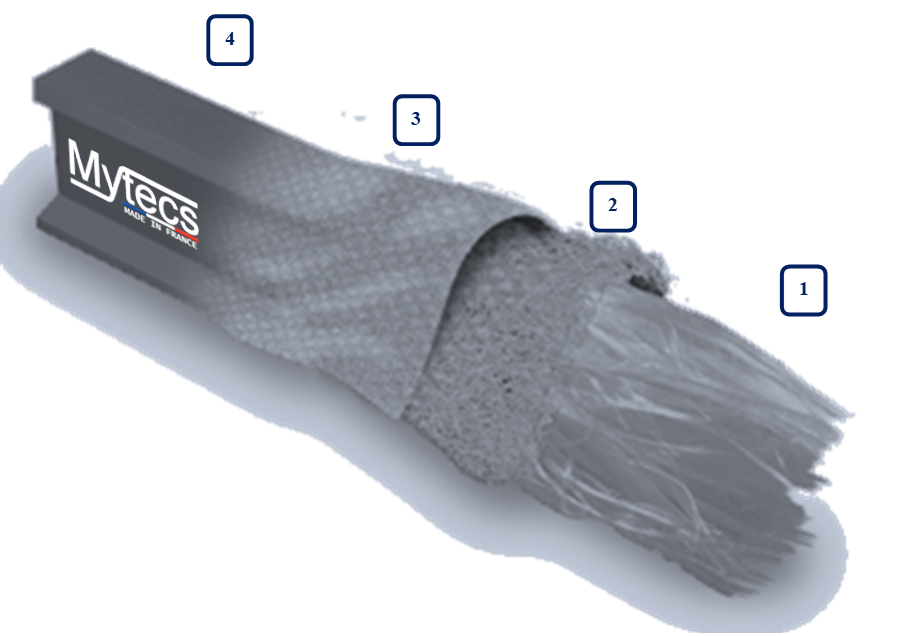 - 3 - Le voile de surface assurant la résistance aux U. V. et aux agents corrosifs.